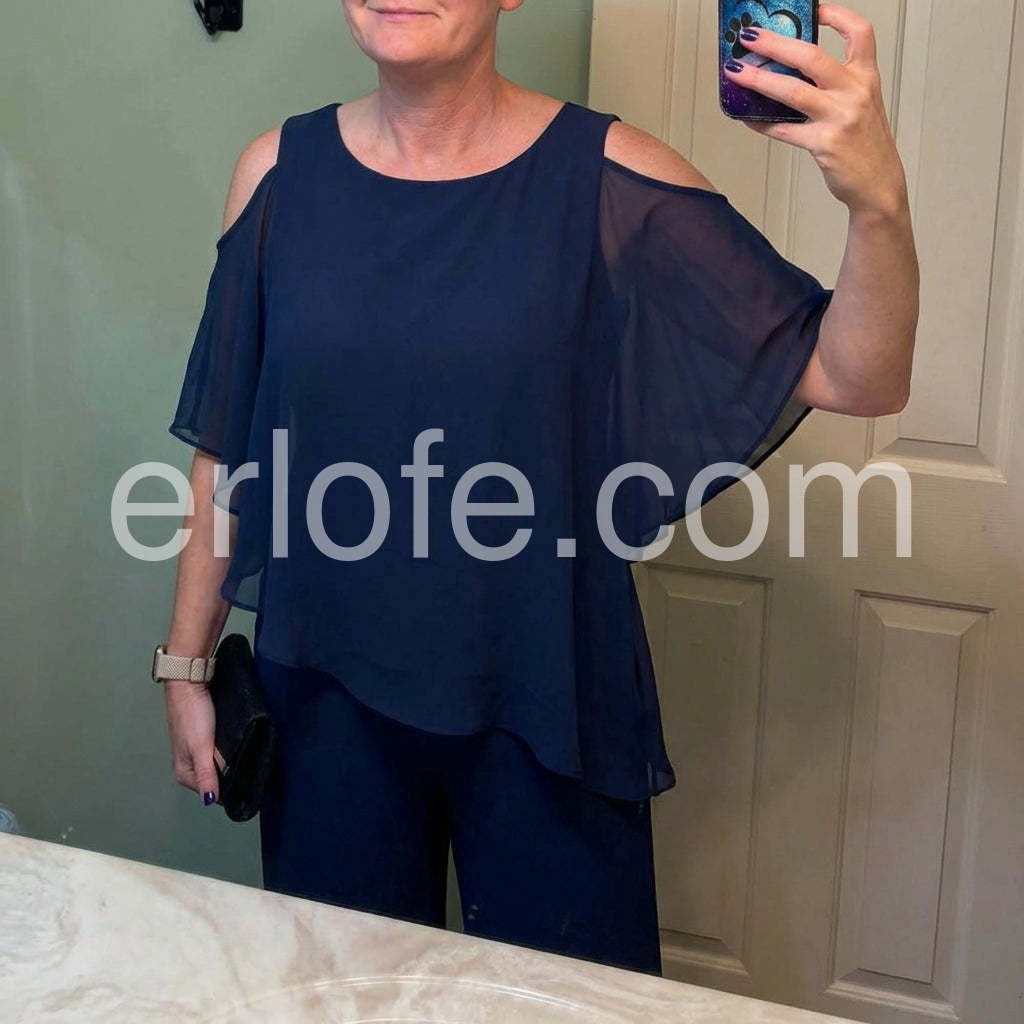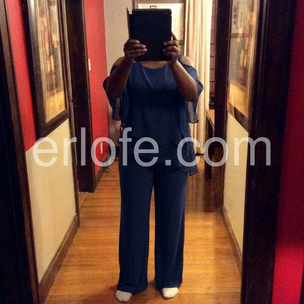 Yes!It runs true to the garment size chart please choose your size based on your measurements.This fashionable two-piece set includes a navy cold shoulder three-quarter length draped sleeves and asymmetrically layered ruffled top and pants. Crafted from lightweight and soft materials, this set is perfect for any occasion. Step up your look with this stylish set.