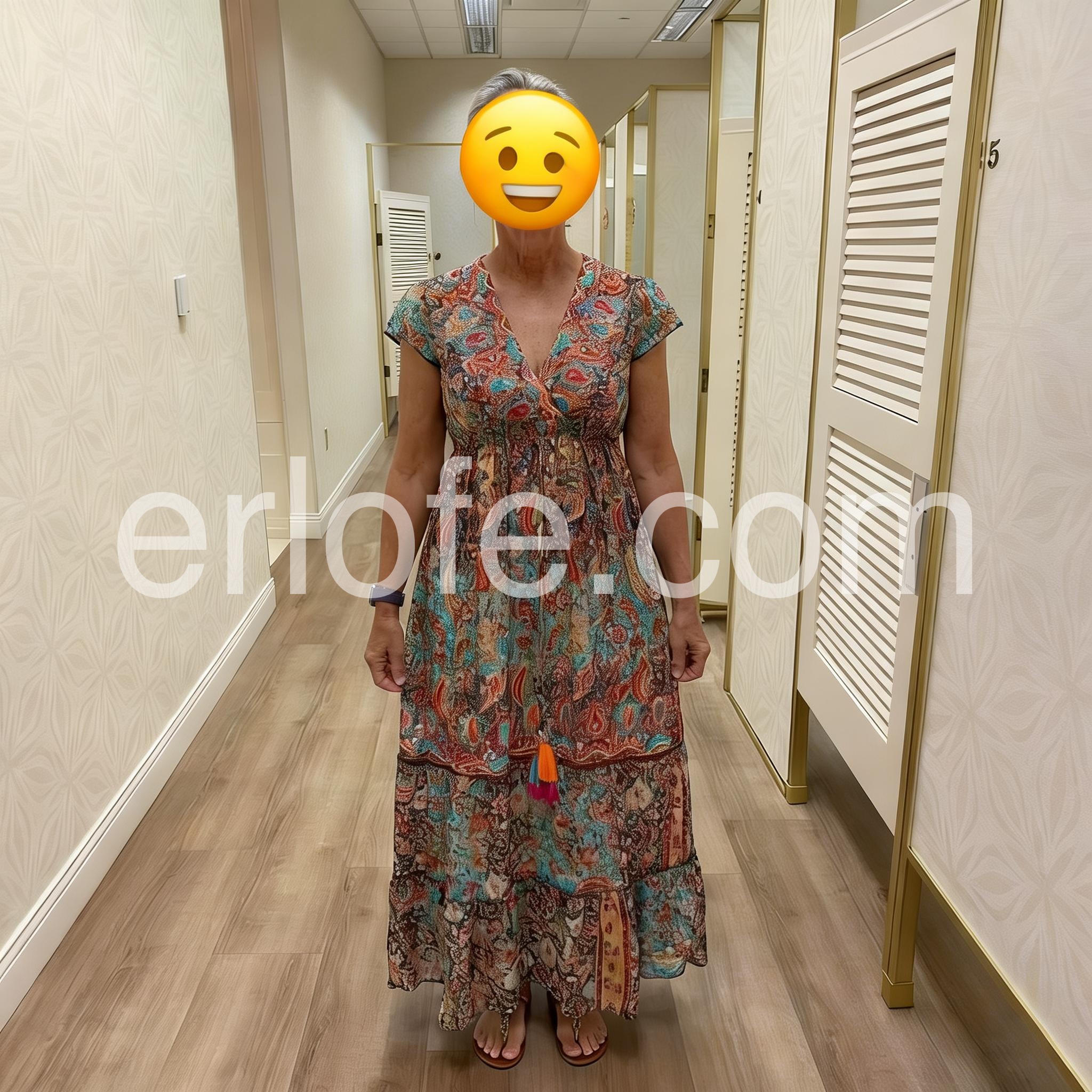 Yes!It runs true to the garment size chart please choose your size based on your measurements.Introducing our elegant and versatile Special Multicolor V-Neck Maxi Dress. Crafted with a flattering v-neck design and made with high-quality material, this dress is perfect for any occasion. With a stunning multicolor pattern, this dress is sure to make a statement. Elevate your wardrobe with this must-have piece.