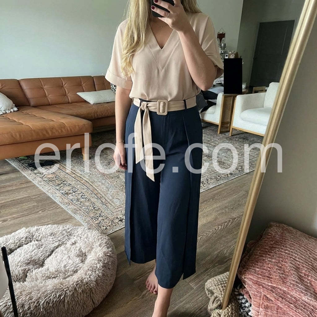 Yes!It runs true to the garment size chart please choose your size based on your measurements.Elevate your wardrobe with this sophisticated V-Neck Short Sleeve Two Piece Set. Designed for versatility, it combines tailored precision with contemporary styling. The flattering V-neckline enhances your silhouette while the coordinated pieces allow for effortless mixing and matching. Perfect for transitioning from professional settings to evening occasions with refined ease.